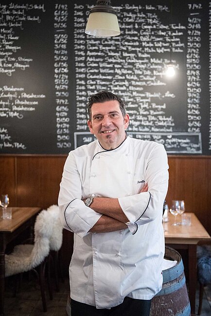 Fabbri: Für mich ist das ein Stück meiner Kindheit in Rimini. Ich komme aus armen Verhältnissen und mein Vater ging früher dreimal die Woche an den Hafen, als die Fischer zurückkamen. Sepia und Calamari waren damals Volksgüter, die man günstig bekam. Meine Familie in Italien freut sich noch heute, wenn ich die kleinen Sepia mit Brot in Tomaten koche, die meine Mutter früher für uns gemacht hat. Die musste man damals noch mit Nähgarn zusammenhalten, weil es nichts anderes gab. Fisch beziehe ich aber nur aus europäischen Gewässern. Dieselbe Gattung Calamari in Asien hat einen viel geringeren Fettanteil und schmeckt wie Kaugummi. Die können sie nur essen, indem Sie sie praktisch totfrittieren.